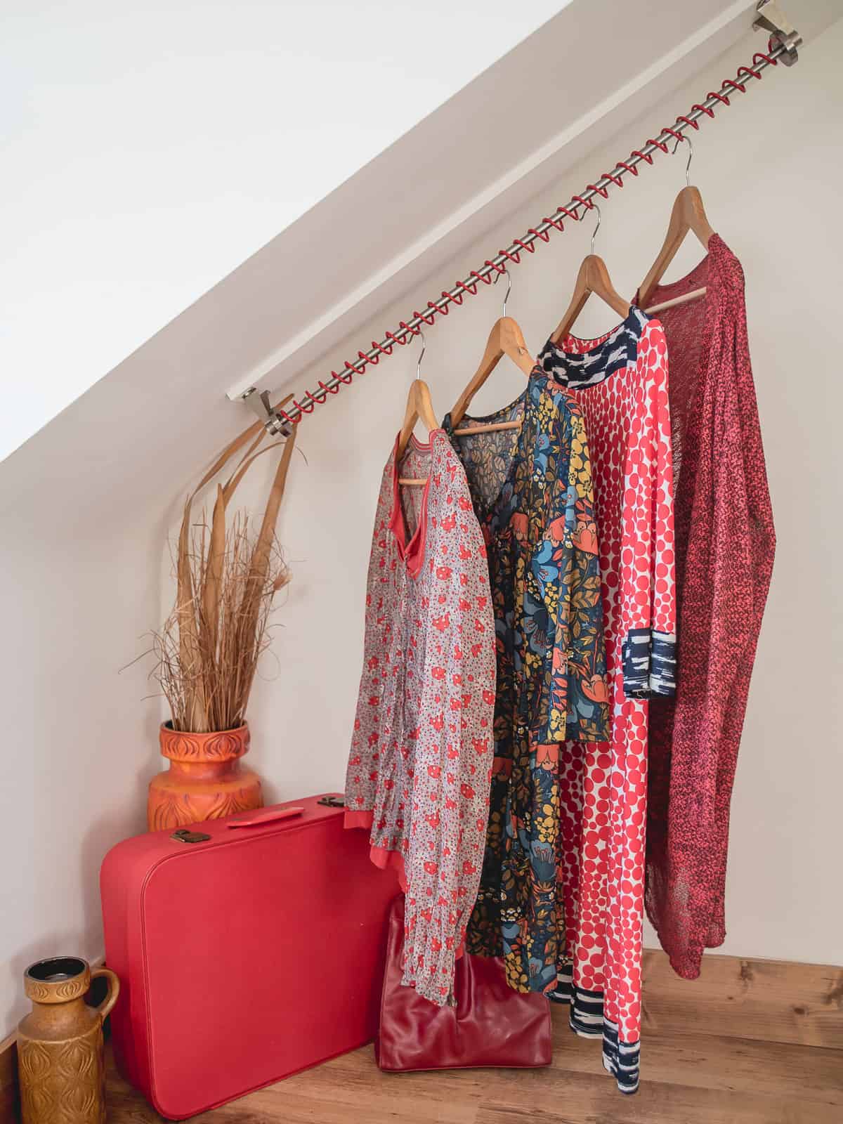 Loft storage sorted with the vibrant Zebedee Textured Red Any Angle Clothes Rail.