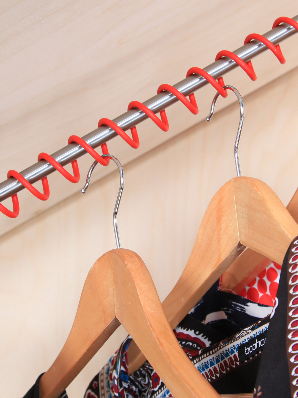 The Zebedee Any Angle Clothes Rail is the original, off-the-shelf solution for angled ceilings, loft spaces, and under-eaves wardrobes. Its unique spring coil spirals around a central rod, so every turn holds a hanger—keeping clothes secure, evenly spaced, and preventing them from sliding into a heap.